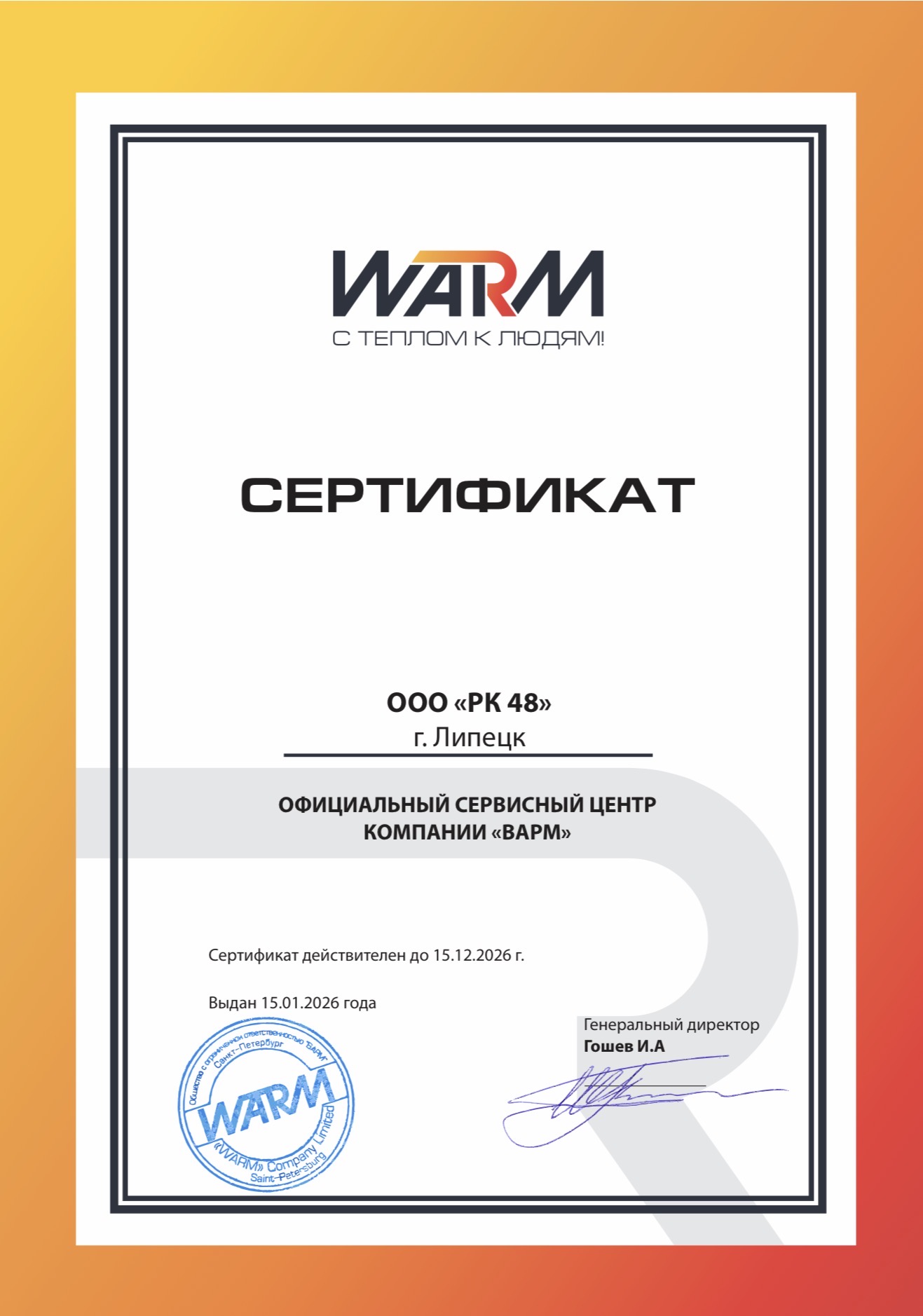 Мы являемся официальным сервисным центром отопительного оборудования Warm в Липецке и Липецкой области.